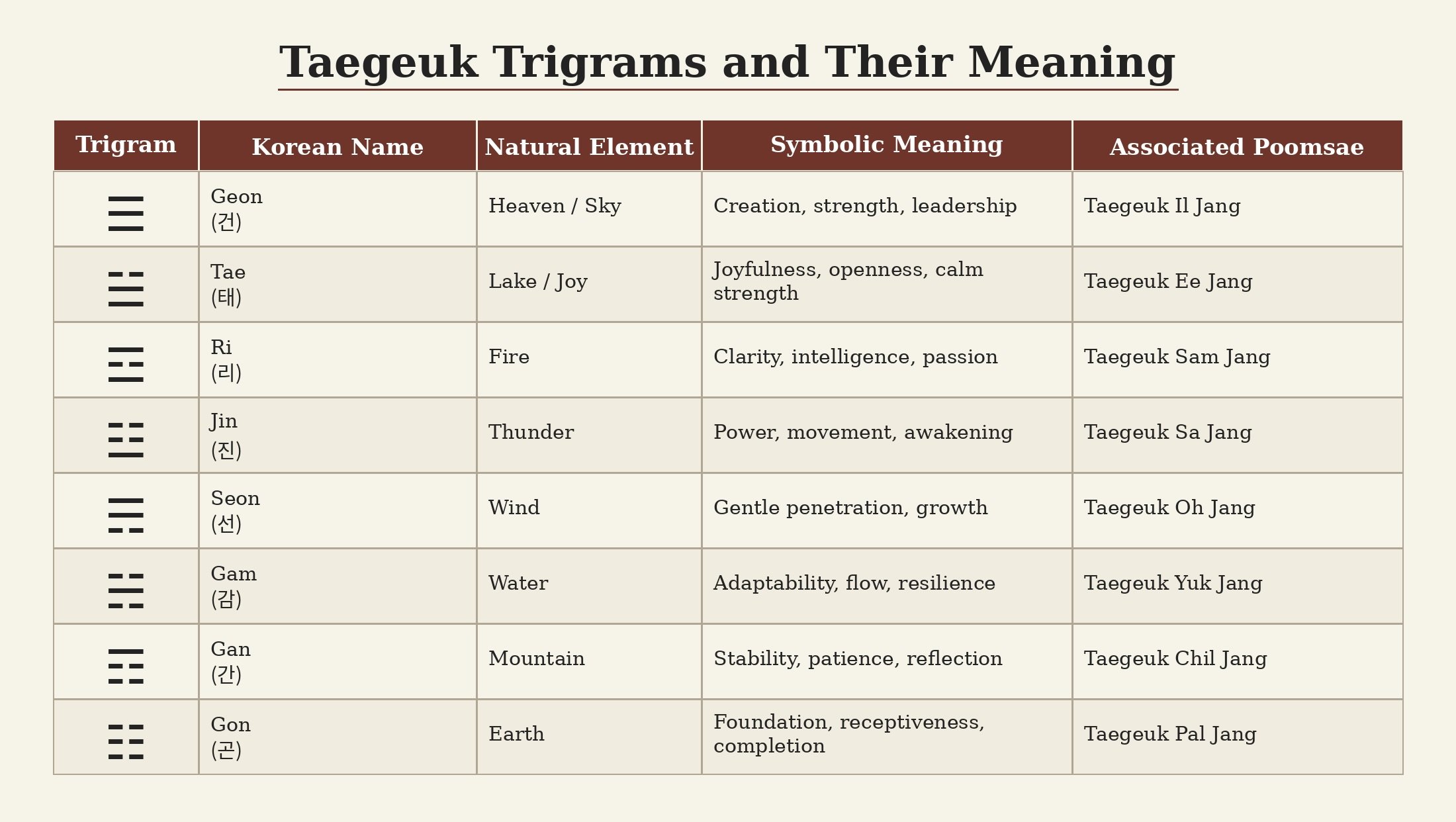 Taegeuk Trigrams and their meanings chart